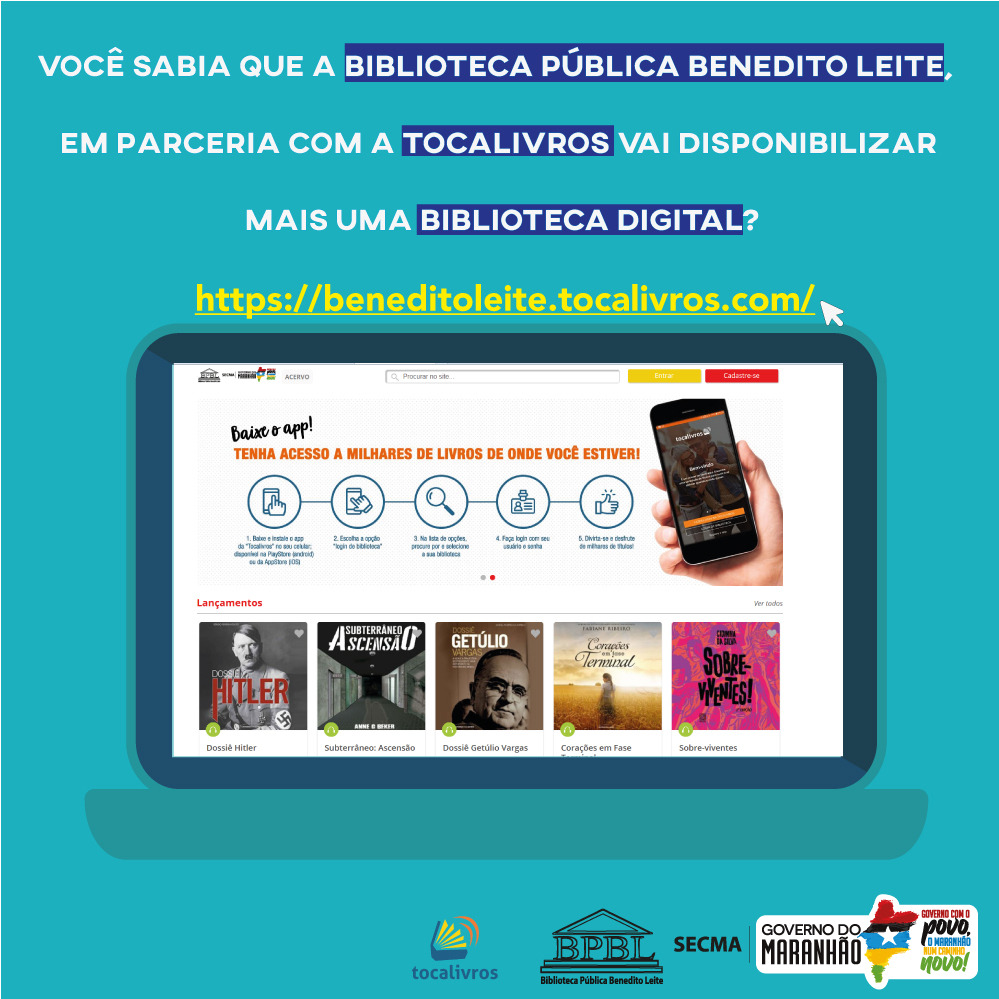 Leitura acessível, de qualquer lugar e de graça apenas a um clique das mãos. No mundo moderno e buscando ampliar cada vez mais o público leitor, a Biblioteca Pública Benedito Leite, em parceria com a editora Tocalivros, começou a disponibilizar mais uma biblioteca digital para os maranhenses, a partir deste mês de fevereiro com 41 mil títulos ao alcance de uma tela.