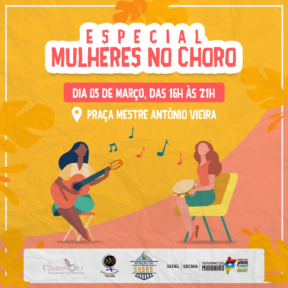 A programação terá início às 16h, com apresentações voltadas à presença da mulher no Choro no Maranhão, sarau de poesias, apresentações musicais, feirinha de artesanato, modalidades esportivas e muito mais. “Temos organizado esse evento com muito carinho, considerando a importância que tem o fomento à inclusão das mulheres no meio do Choro. A ideia que temos é garantir que a cultura chegue a todos, desenvolvendo ações que fomentem o gênero do Choro no nosso Estado, sem perder, claro, a oportunidade de levar lazer à comunidade do Monte Castelo”, cita a gestora da Estação do Choro, Nyesla Vale.