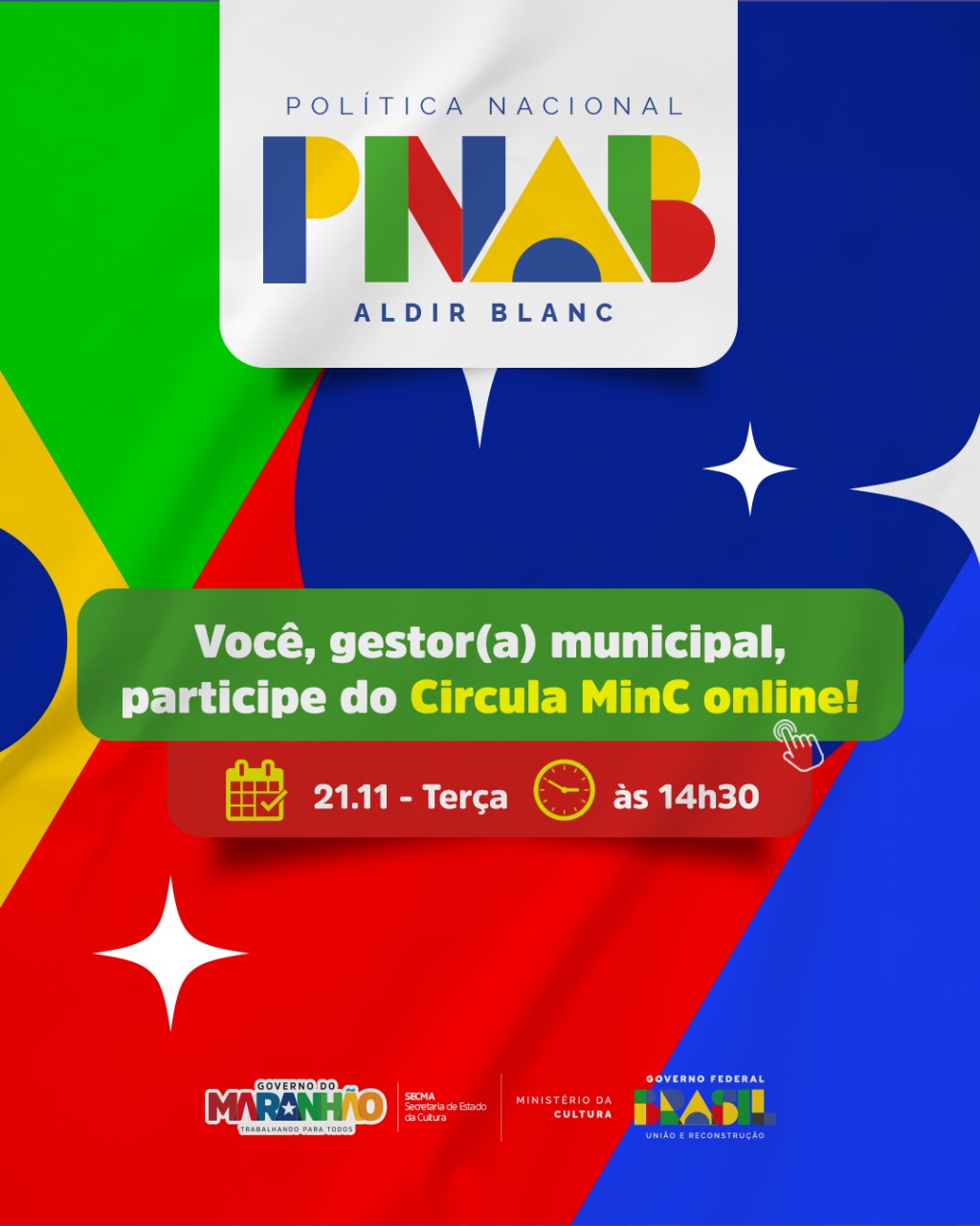 O Maranhão participa do encontro no dia 21 de novembro (terça-feira). Assim, a Secretaria de Estado da Cultura do Maranhão está convidando gestoras e gestoras municipais para participarem do evento, e consequentemente solicitarem os recursos para investir regularmente em projetos e programas