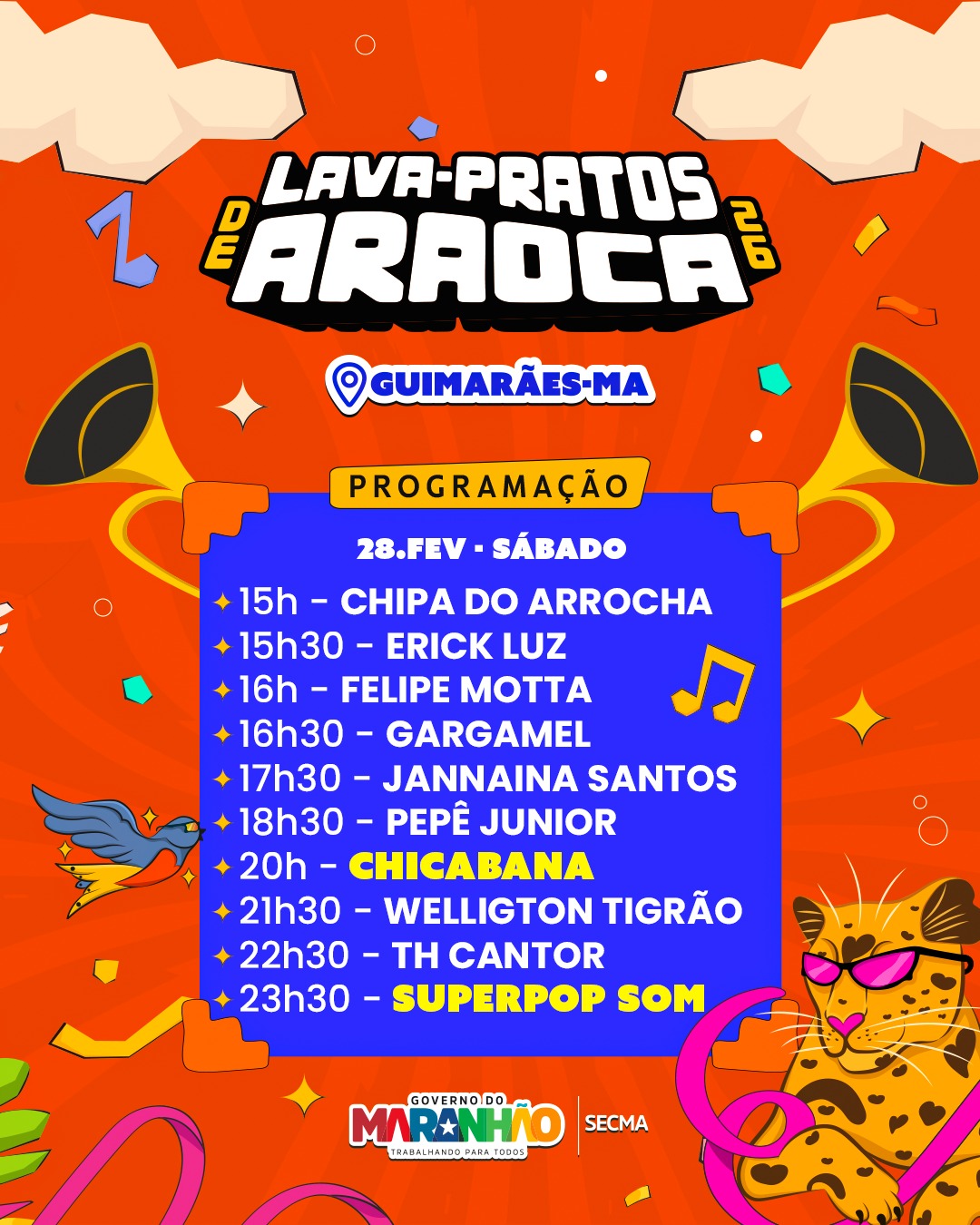 E para quem está pensando que o Carnaval do Maranhão 2026 já acabou, temos uma ótima notícia: O município de Guimarães, no litoral ocidental do Maranhão, já se prepara para receber um dos eventos mais aguardados do calendário festivo da região: o Lava-pratos de Araoca 2026, marcado para o dia 28 de fevereiro. A programação reúne atrações de projeção nacional, nomes consolidados no cenário regional e artistas locais, reforçando o potencial do evento como impulsionador do turismo e da geração de renda.