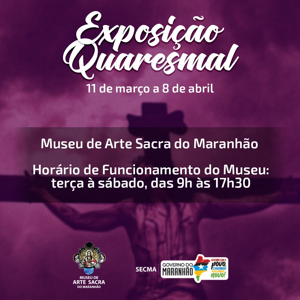 A Exposição Quaresmal abre nesta sexta, 11 de março e segue até o dia 8 de abril, no Museu de Arte Sacra, ao lado da Catedral da Sé em São Luís. O Museu funciona de terça a sábado, das 9h às 17h30.