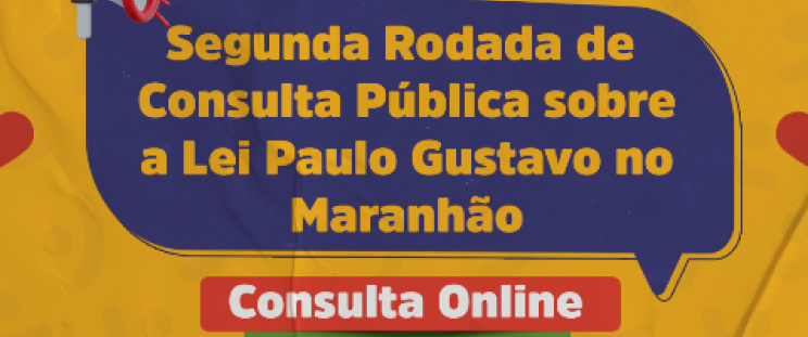 Está disponível no ambiente virtual da Secretaria de Estado da Cultura, a consulta pública sobre a Lei Paulo Gustavo no Maranhão. Destinada aos artistas, agentes e produtores culturais do estado do Maranhão, bem como demais entes interessados em participar da elaboração e implementação da Lei Paulo Gustavo (Lei Complementar nº 195 de 8 de julho de 2022) no Maranhão, o formulário para consulta estará disponível até o dia 6 de setembro no endereço https://docs.google.com/forms/d/e/1FAIpQLSef2QwPx0H-DJa-ZBK6vrvPGRVrO10cDhEAkh96kk2ElVZbDA/viewform?pli=1, ou acessando o link na bio do Instagram da Secma: @cultura.maranhao.