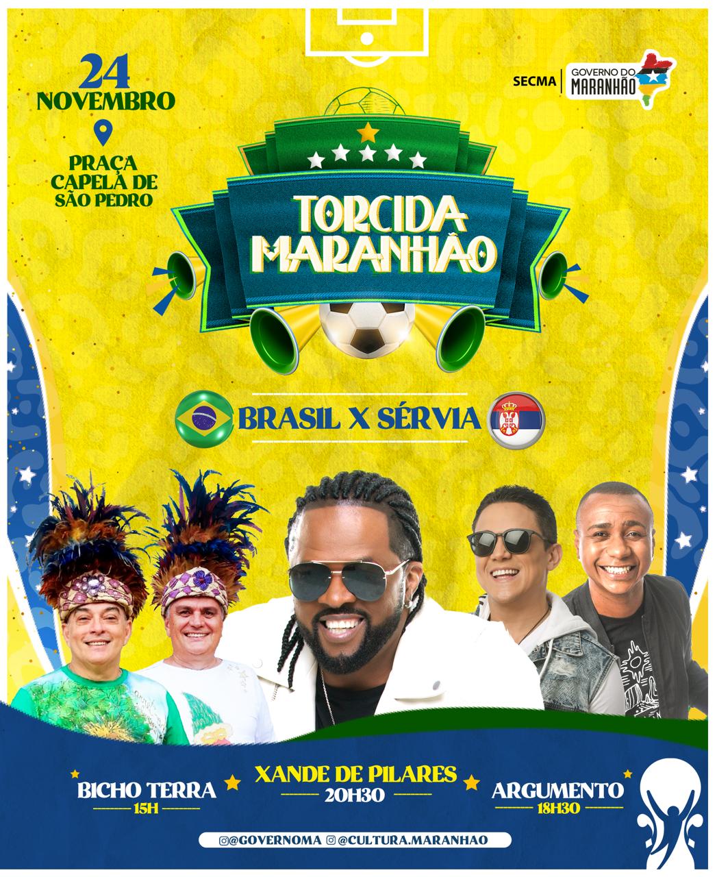Se torcer para a seleção brasileira de futebol em jogos da Copa do Mundo é bom, imagina rodeado de amigos, em um lugar descontraído e ao som de muita música? Pensando nisso, o Governo do Estado do Maranhão, por meio da Secretaria de Estado da Cultura, vai estrear no próximo dia 24, primeiro dia de jogo da seleção brasileira na Copa do Mundo do Catar, o projeto Torcida Maranhão, que vai transmitir a partida do pátio da Capela de São Pedro, na Madre Deus.